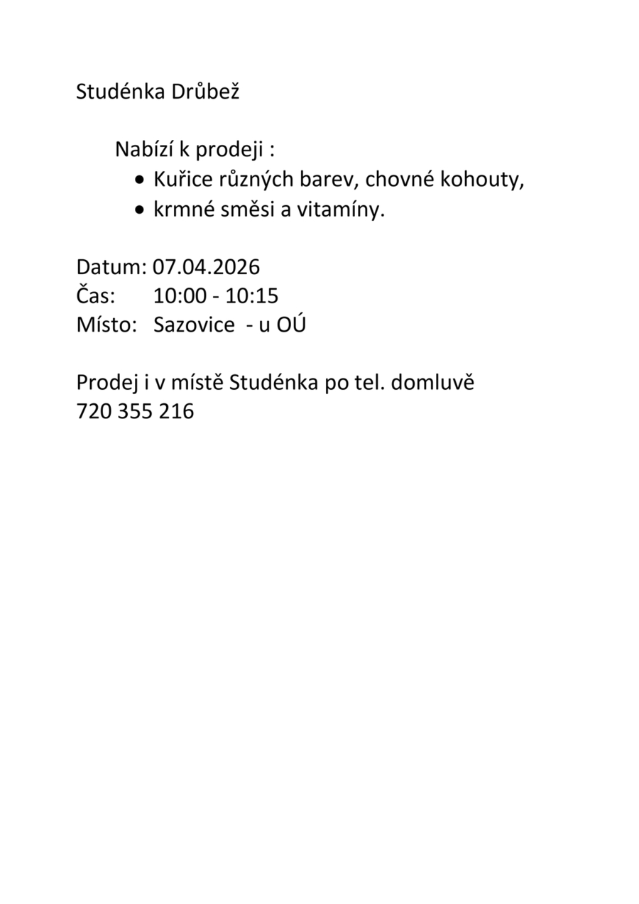 7.4.2026 - Prodej drůbeže - Studénka Drůbež
